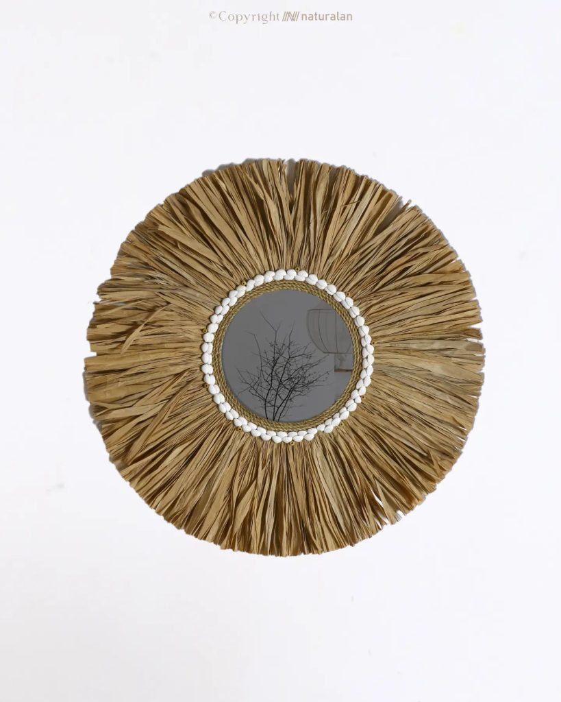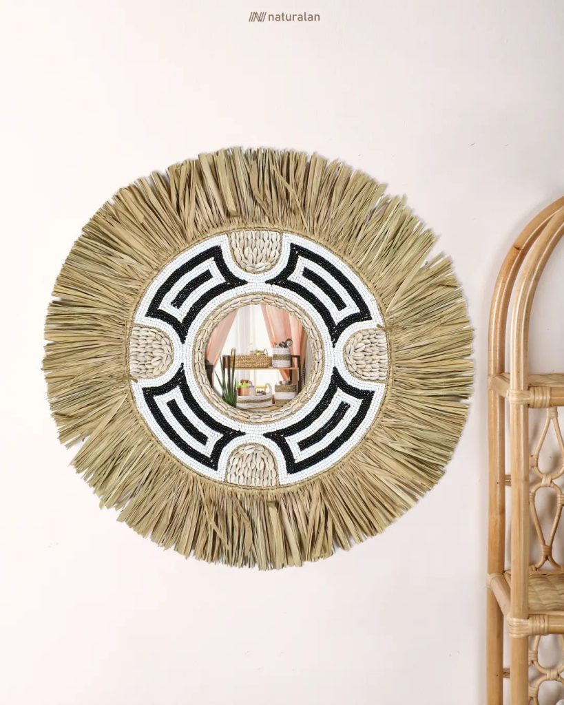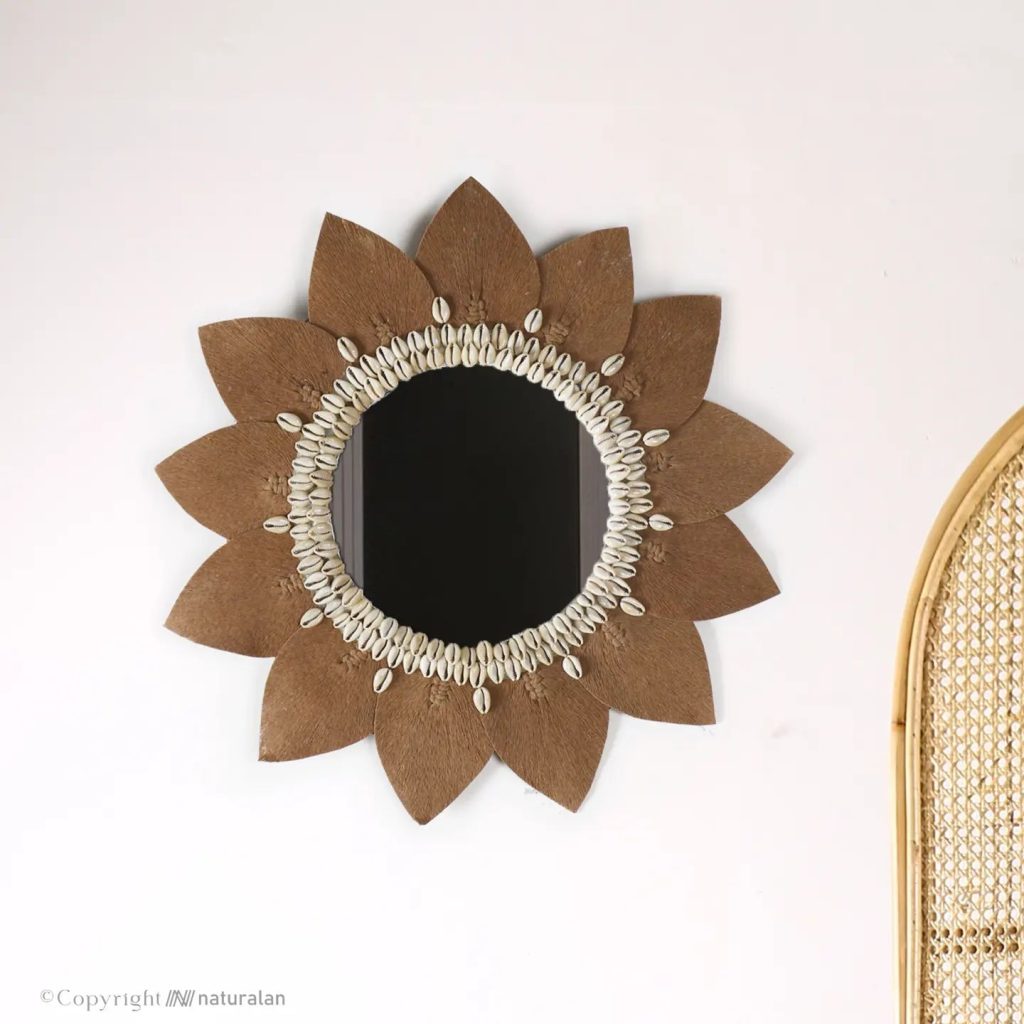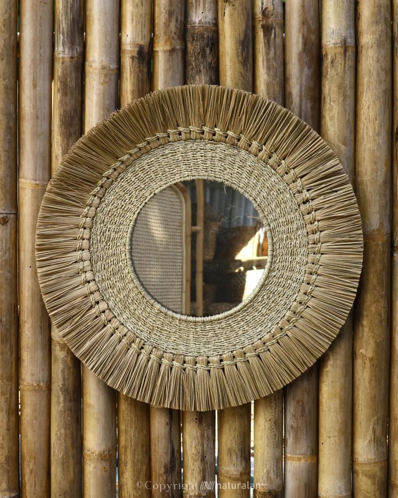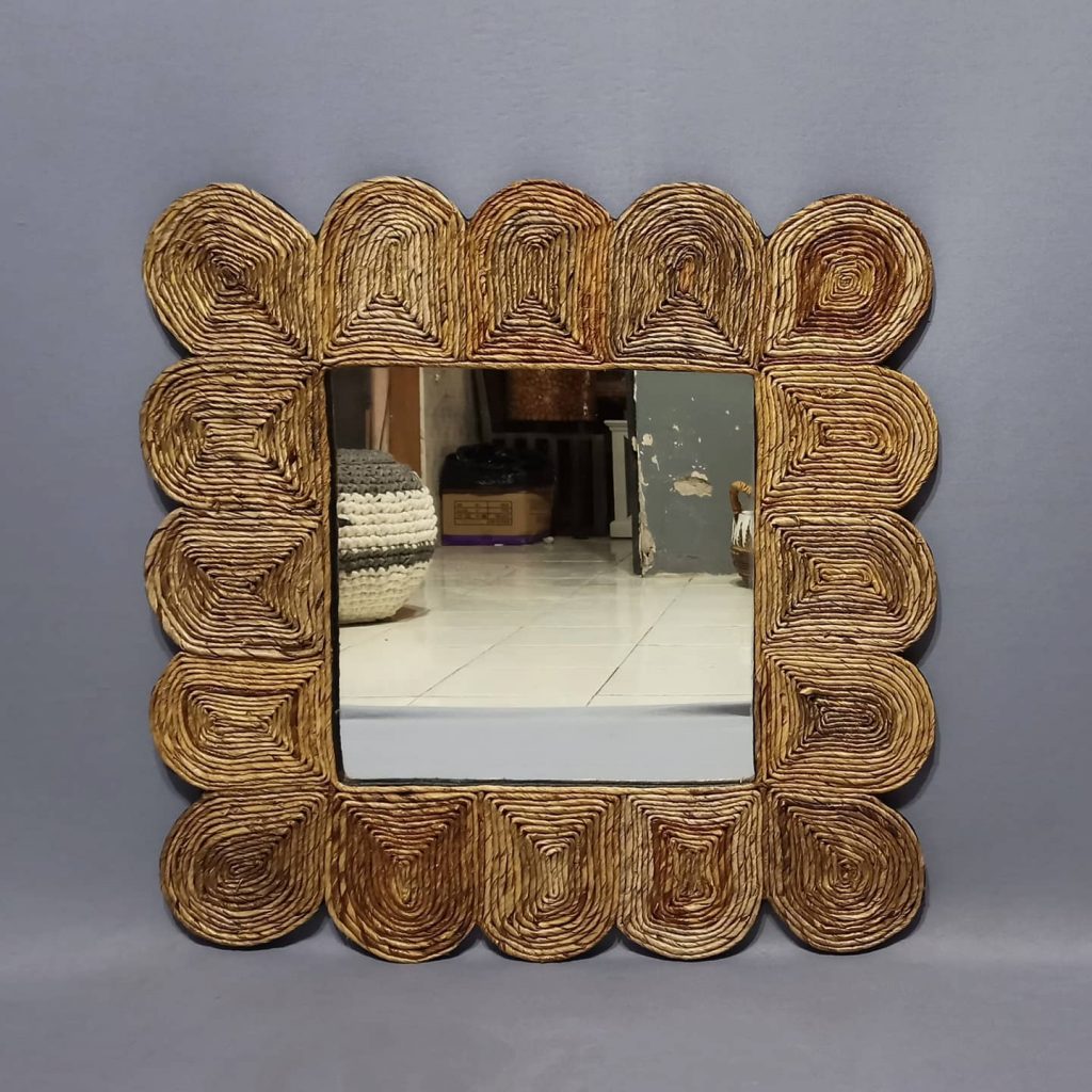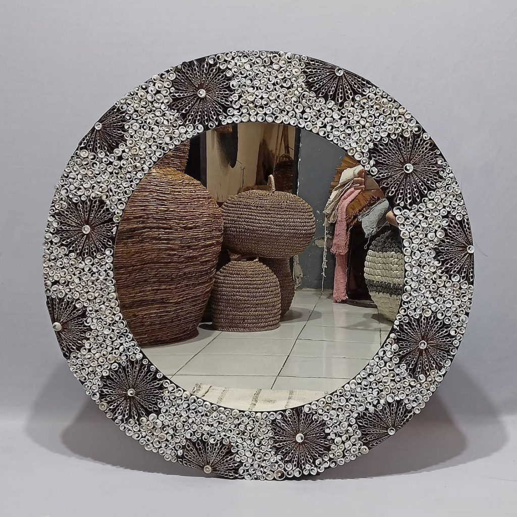 Mirror Sisal mix kerang motif Daun MRSIL613