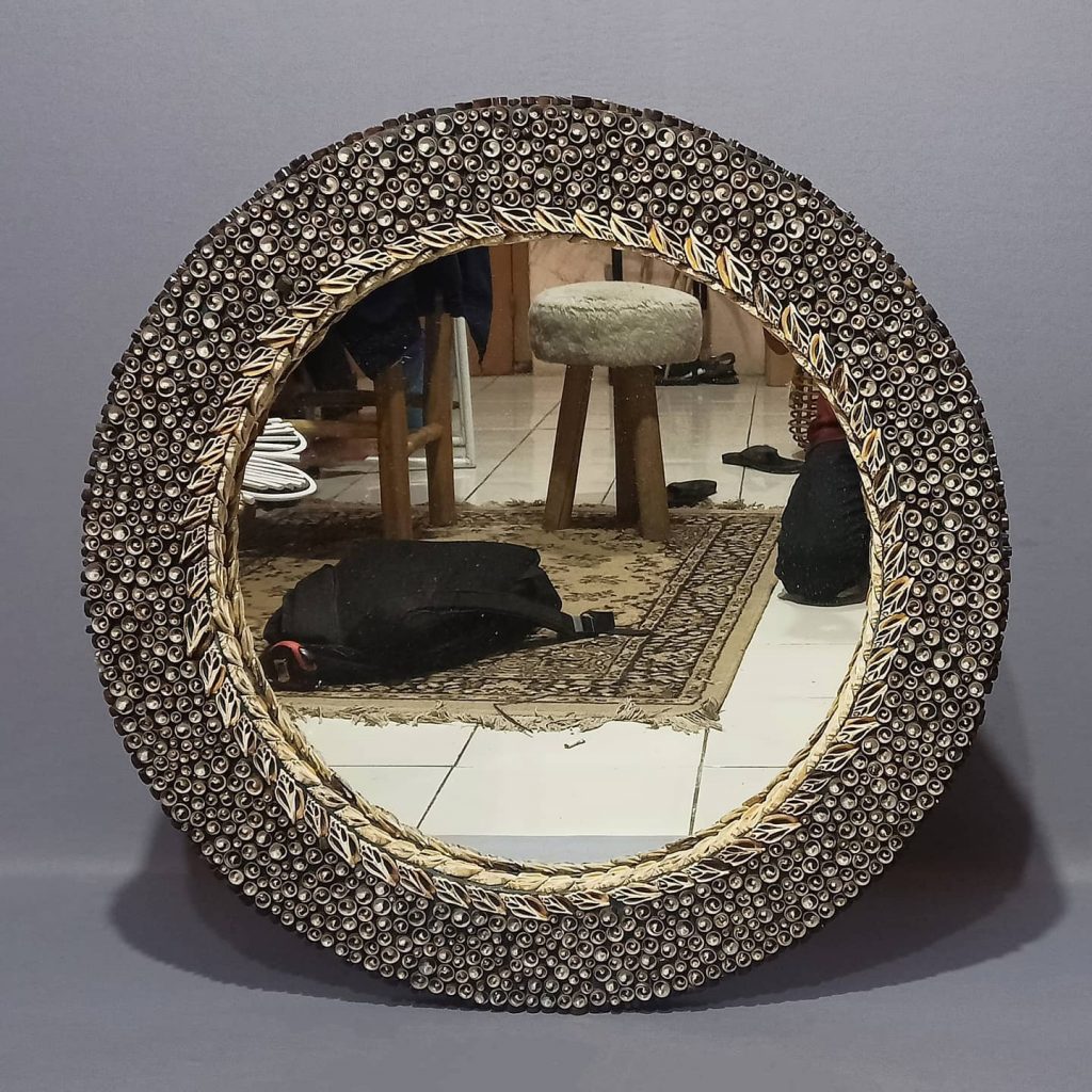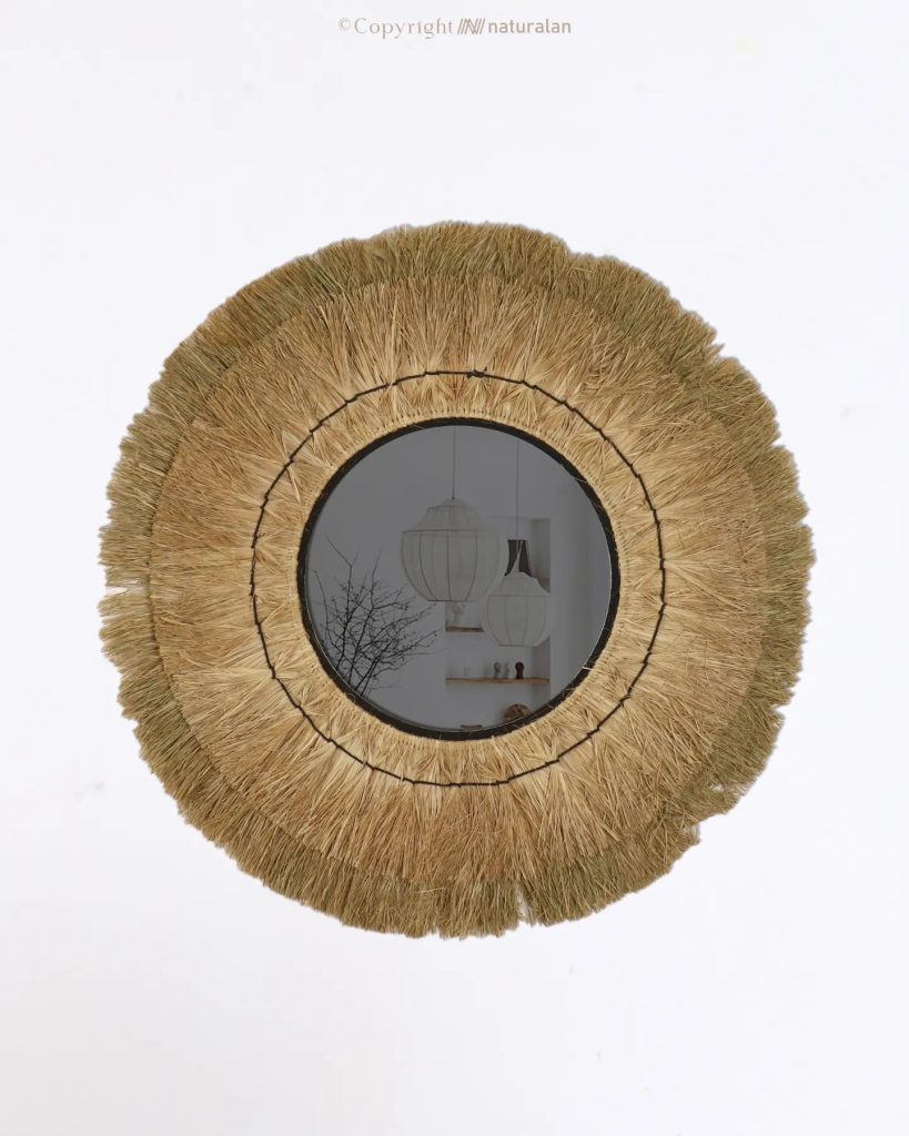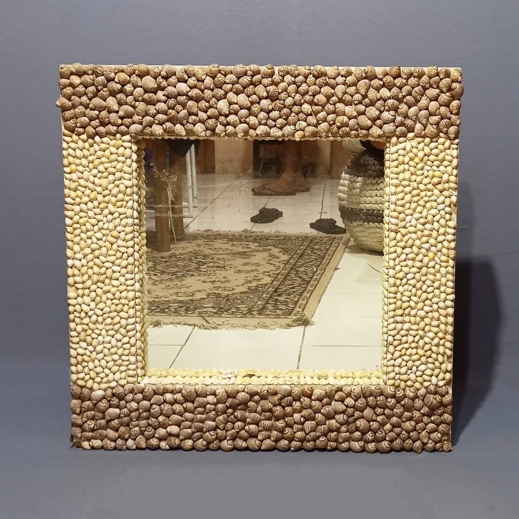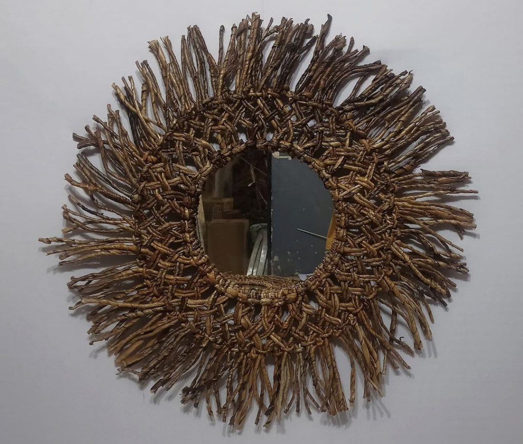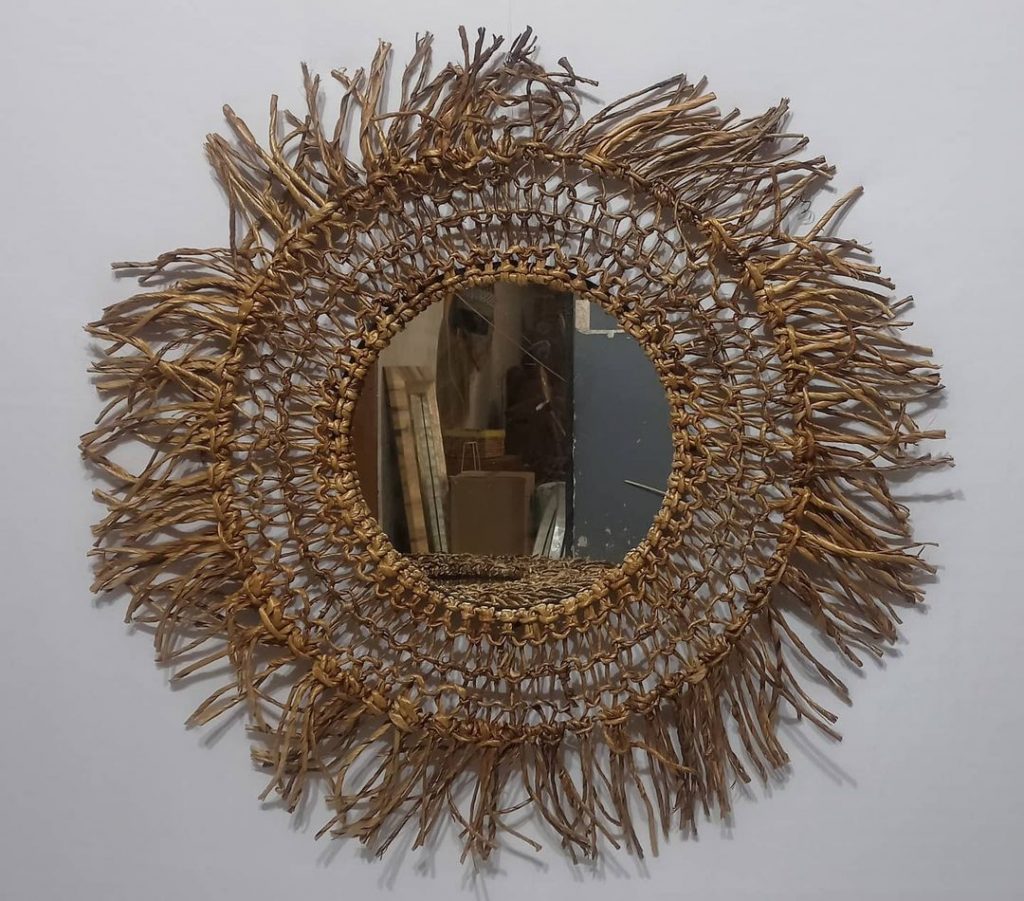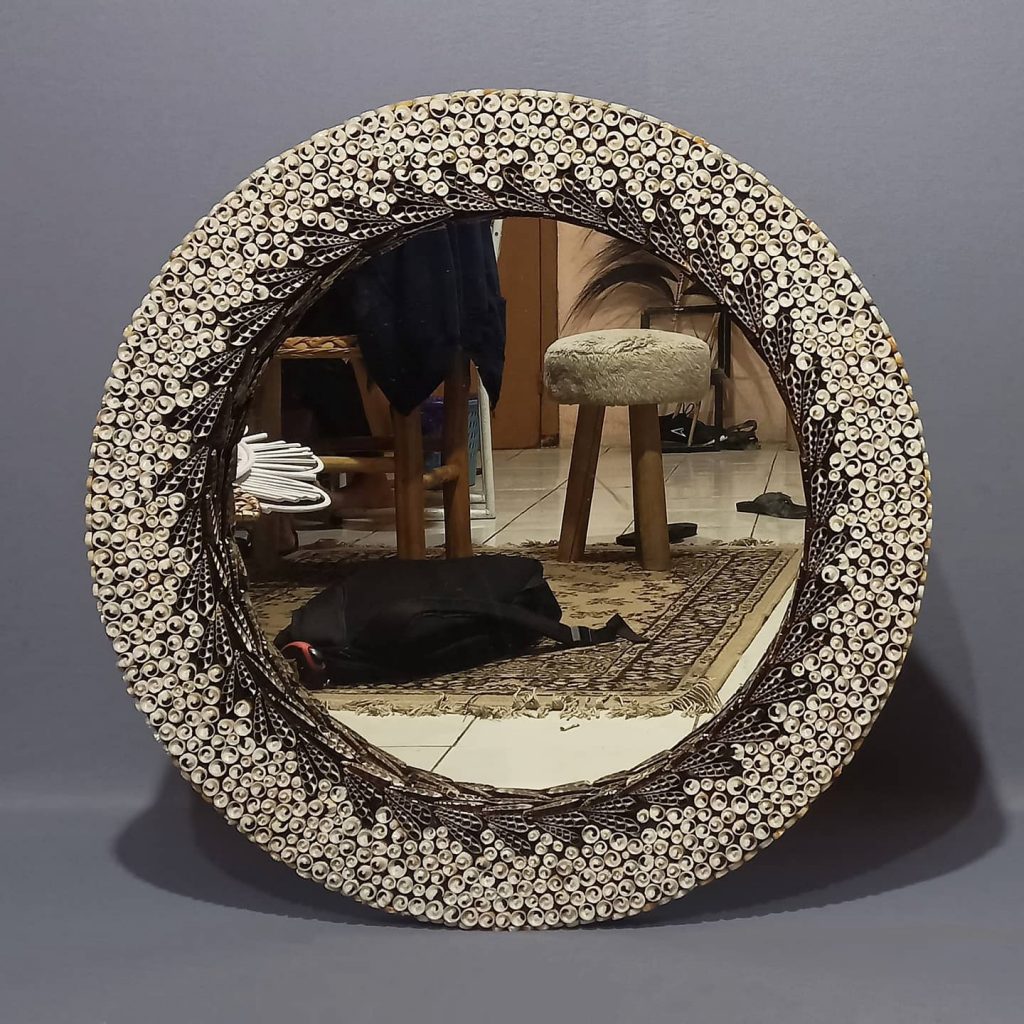 Mirror Sisal mix kerang motif Daun MRSIL613