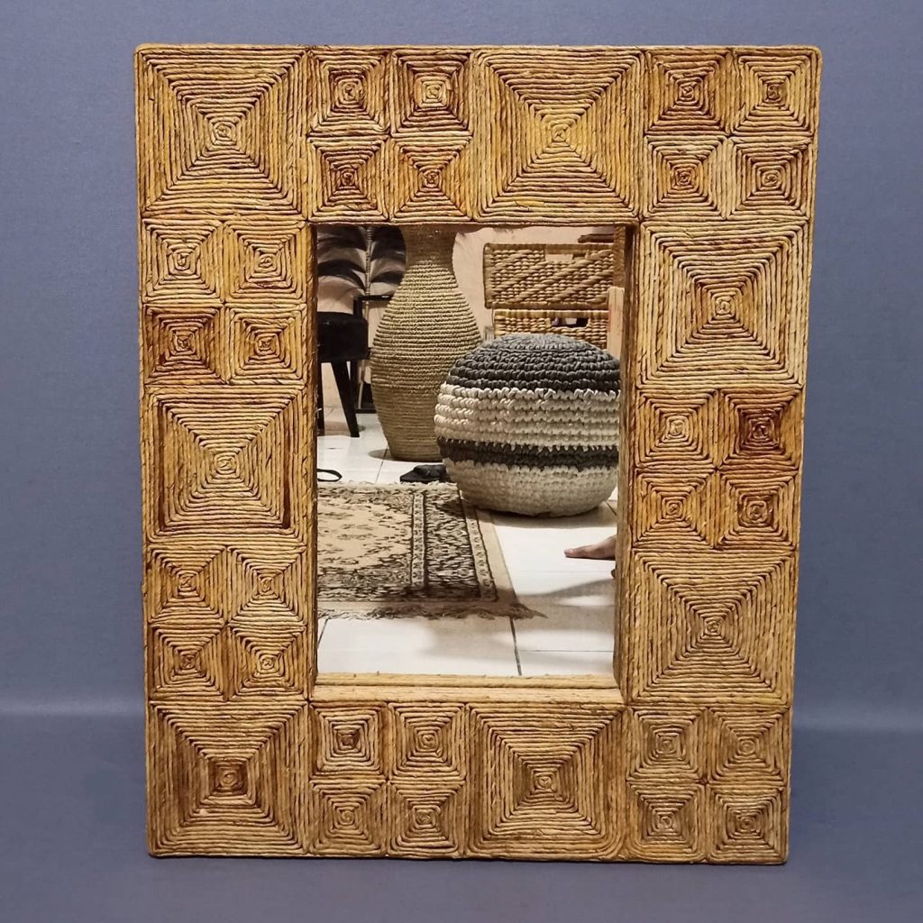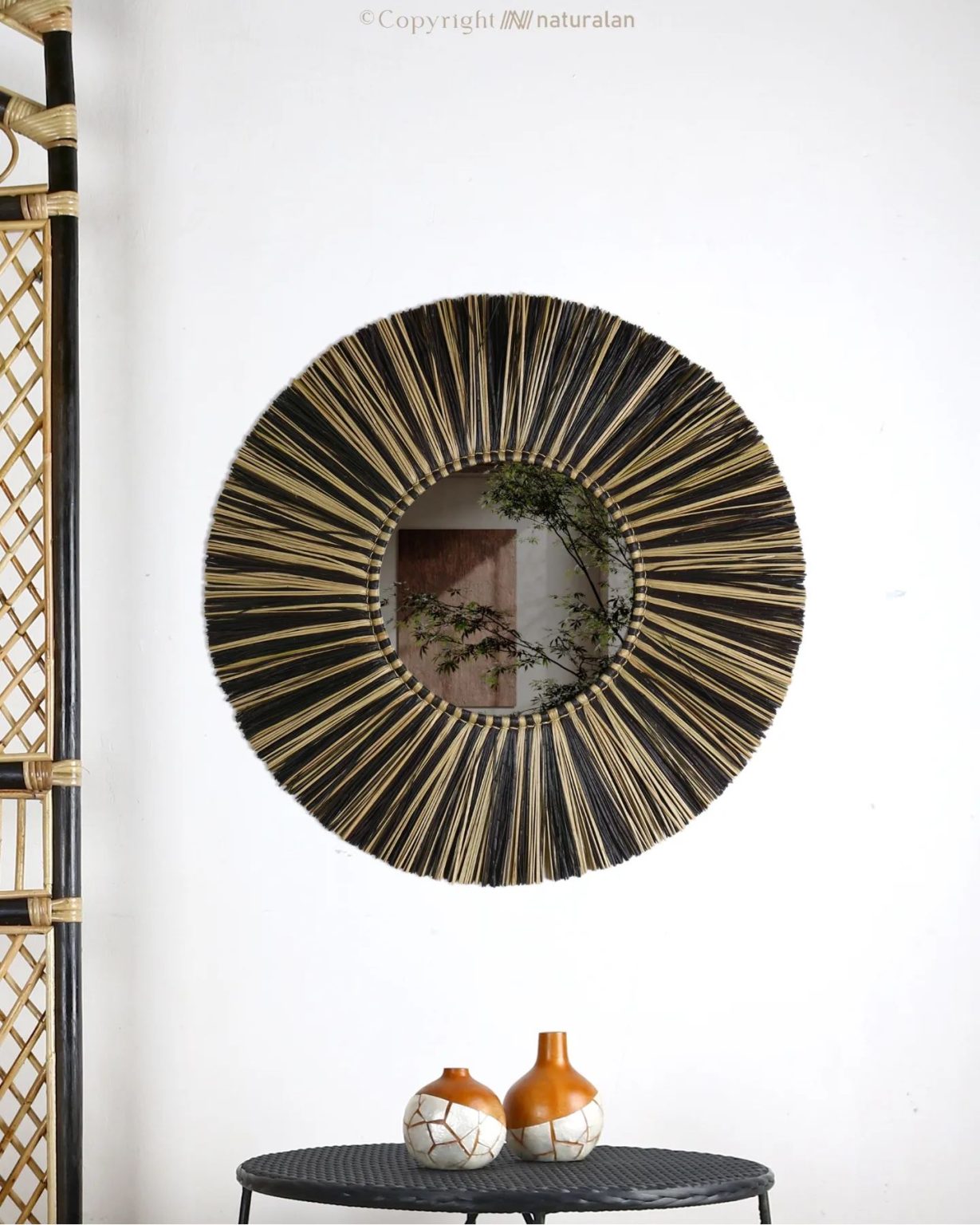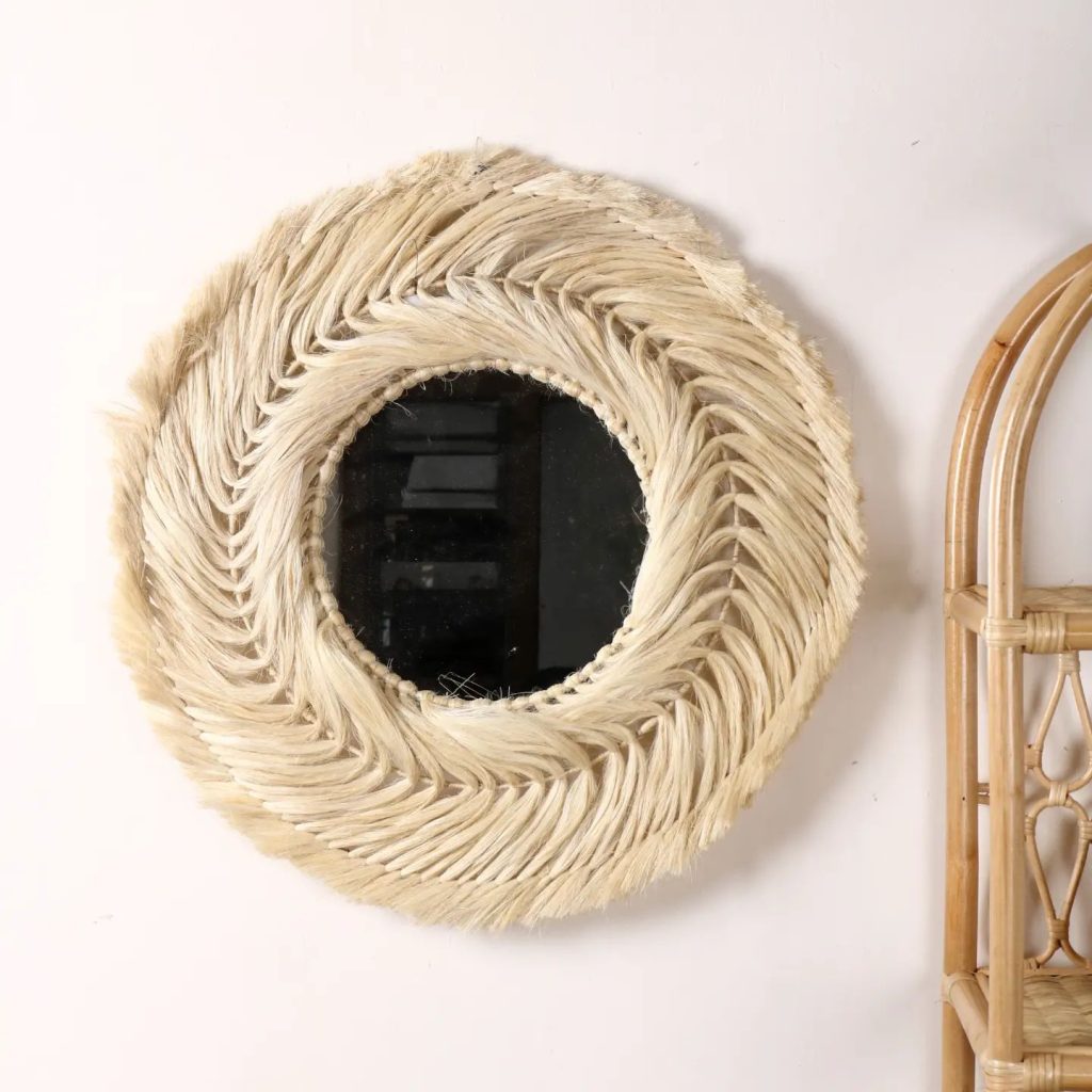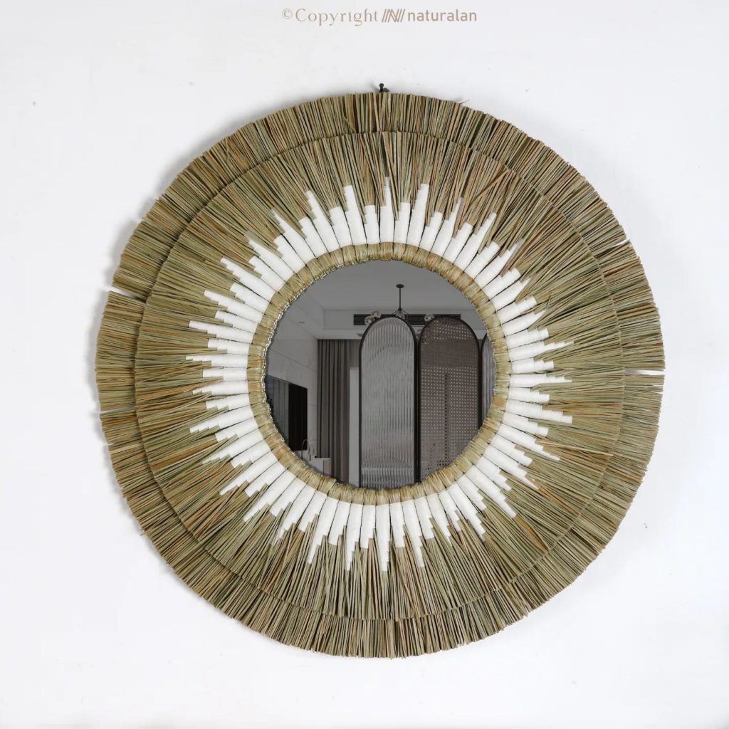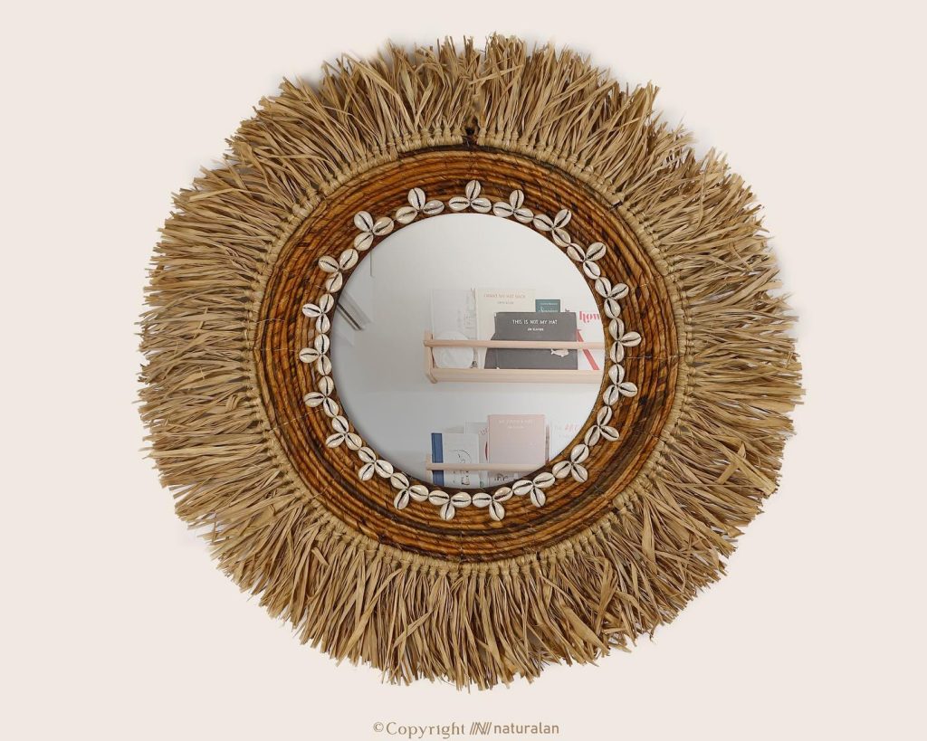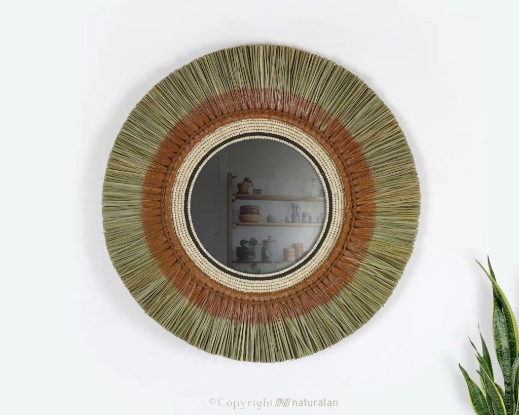 Mirror Sisal mix kerang motif Daun MRSIL613