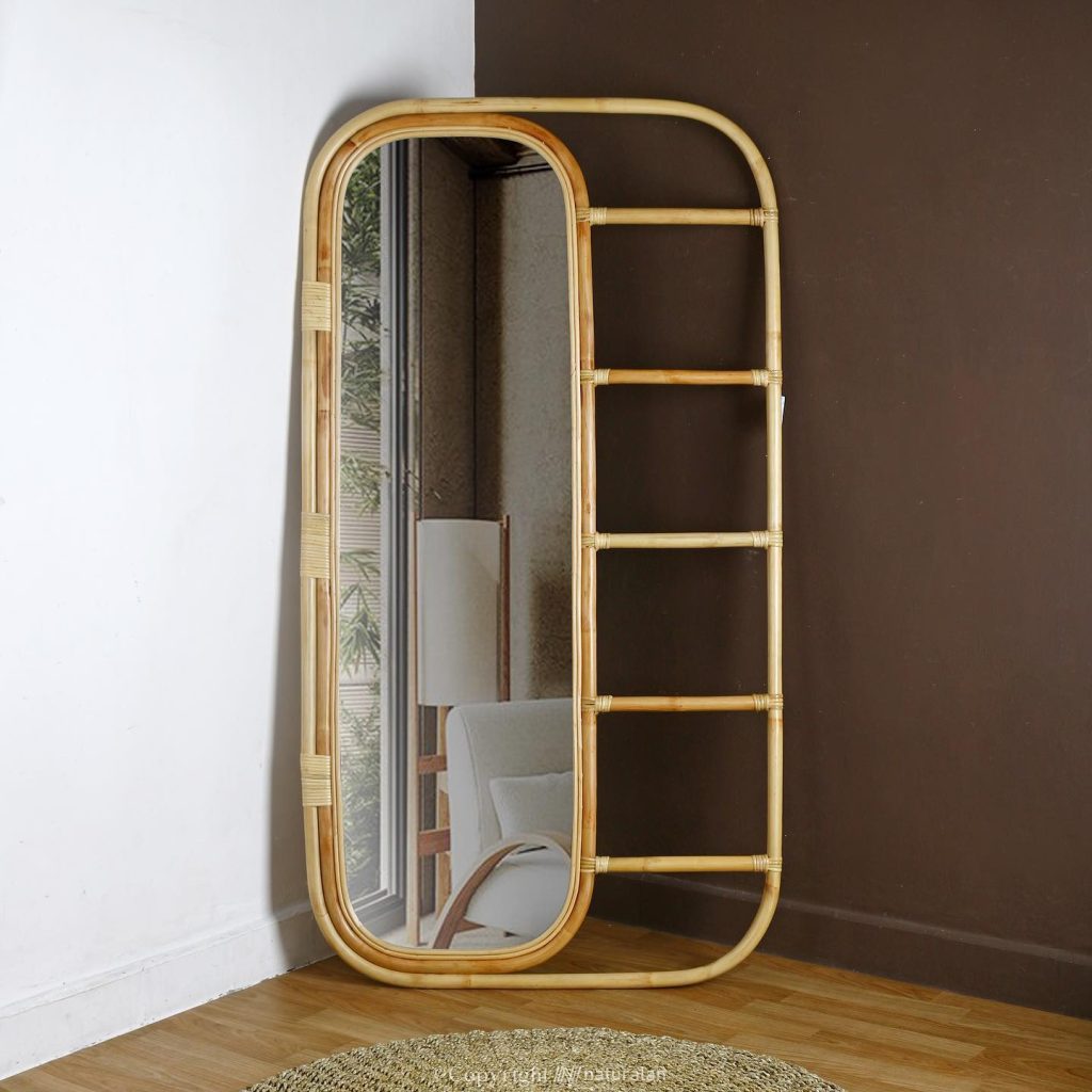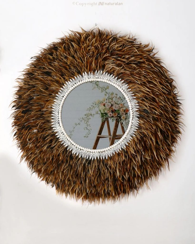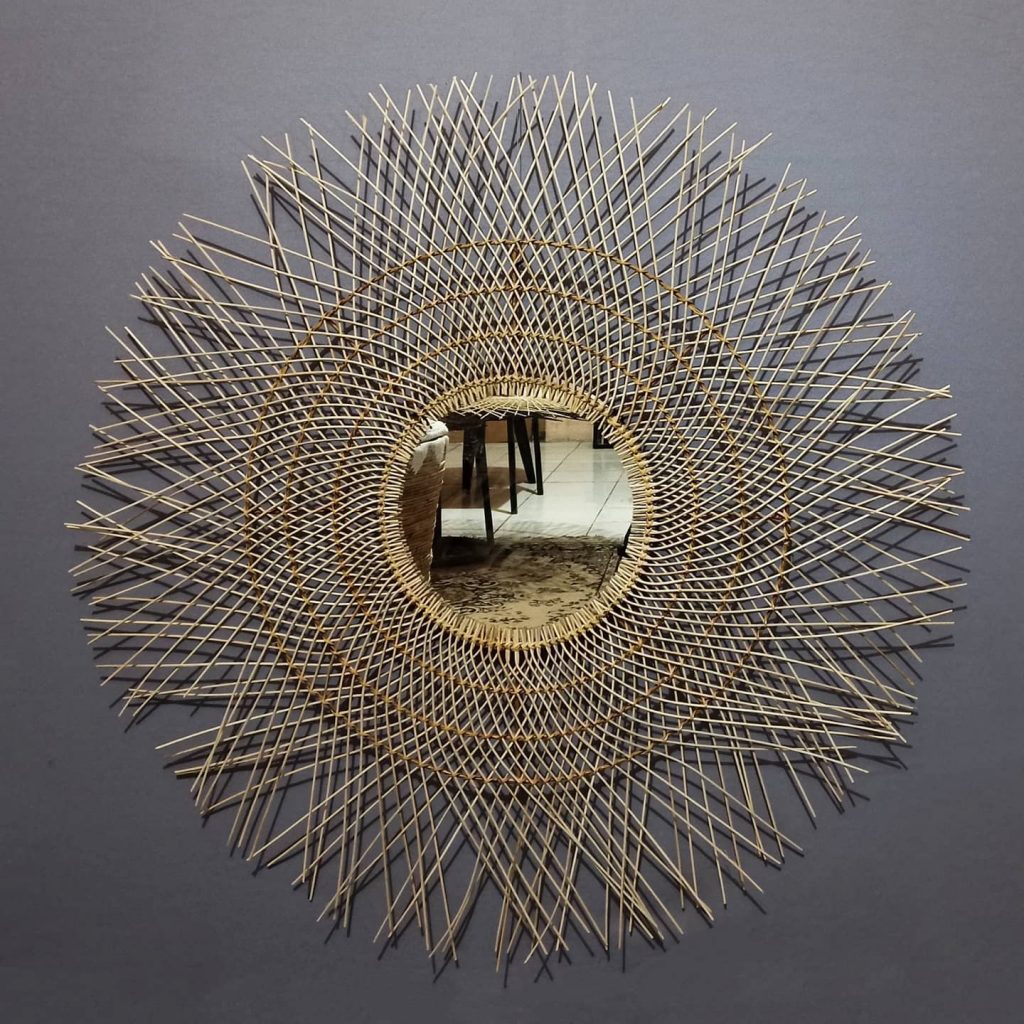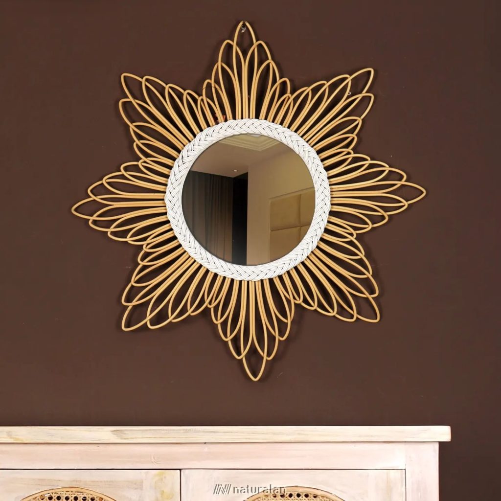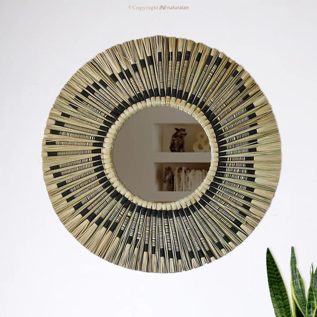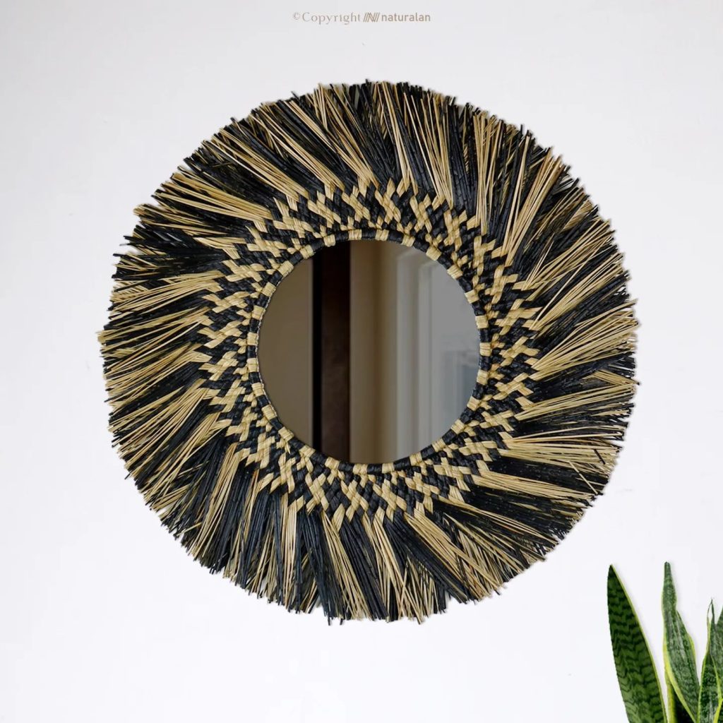 Mirror Sisal mix kerang motif Daun MRSIL613